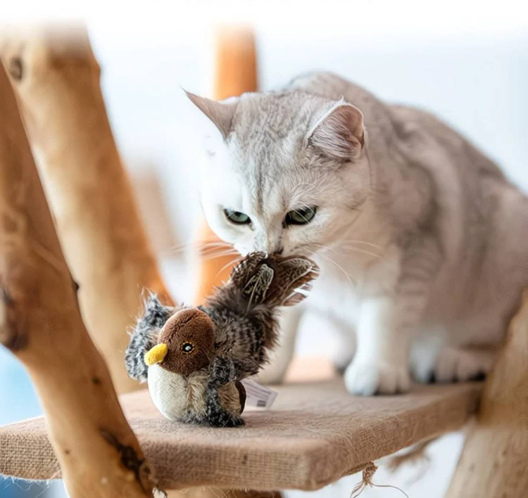 صداهای جیرجیر واقعی: صدای جیرجیر پرندگان واقعی غرایز شکار طبیعی را تحریک میکند و گربهها را در حین بازی مجذوب خود نگه میدارد.